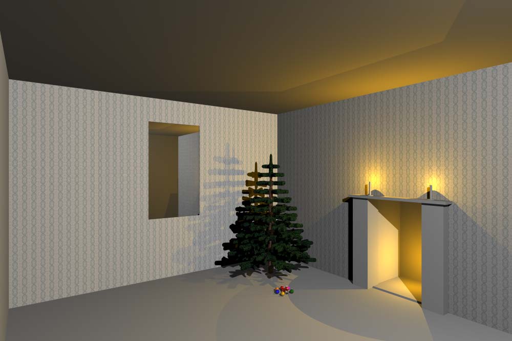 I've integrated the tree and the ornaments. I put some textures on the walls too. /Stefan