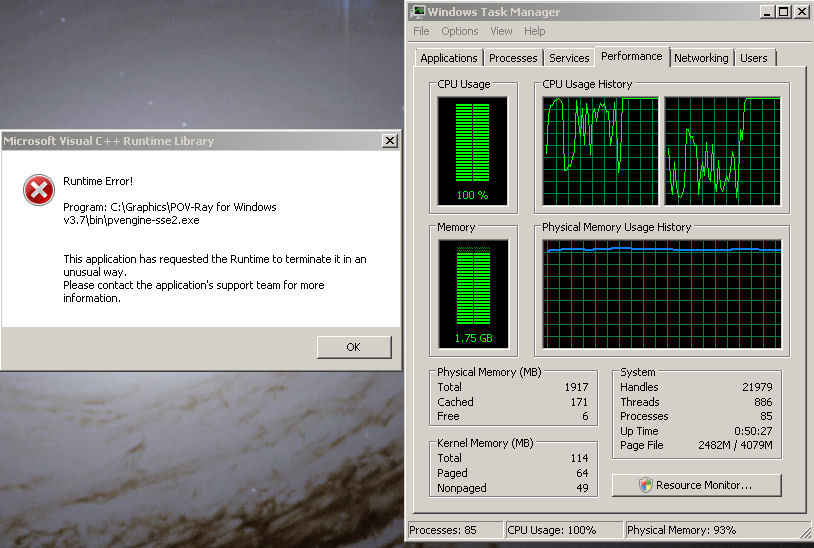 After closing pvengine-sse2.exe I got the error below it possibly has something