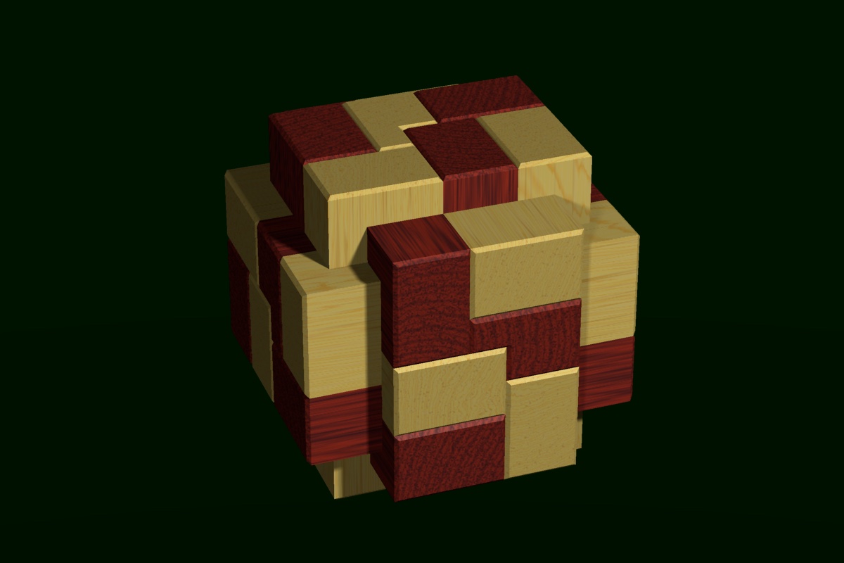 18-piece burr puzzle with an irregular but beautiful structure. The two