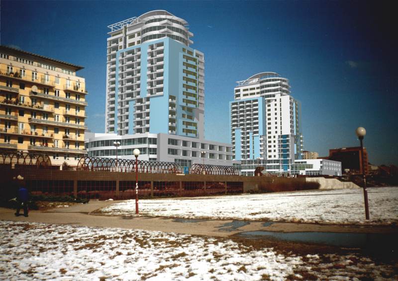 I notice that the vertical lines of the two rendered buildings are
