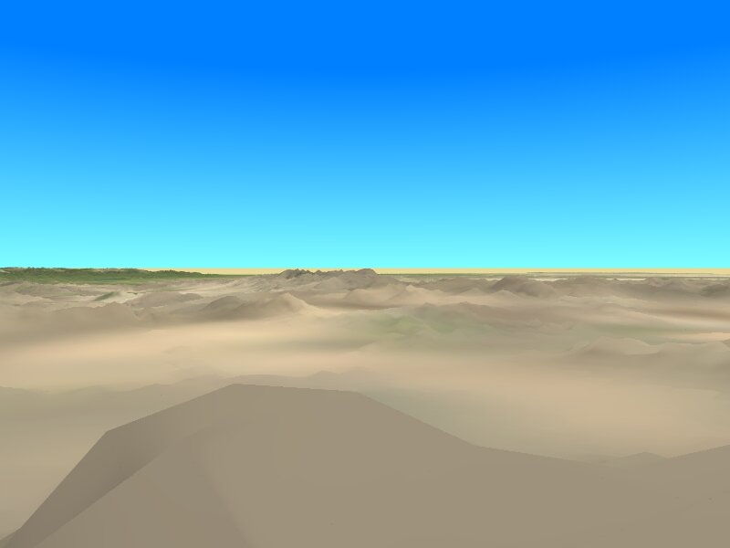 In all the following scenes, the terrain is exaggerated by a factor of