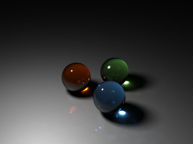 spheres, glass textures, photons and radiosity. I removed the ambience