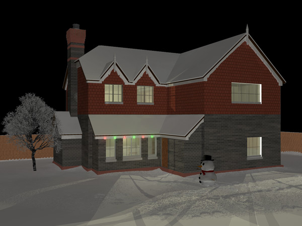 > This is looking good. But the snow on the roof is too flat/uniform,