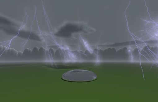 lightning is fine, but the sky should be more obviously full of clouds