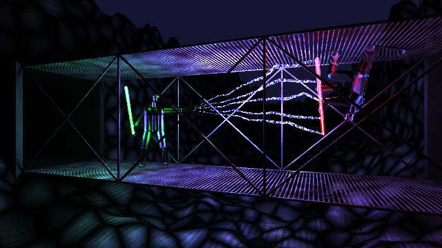 the figures, swords, lightning, walkway and walls (I