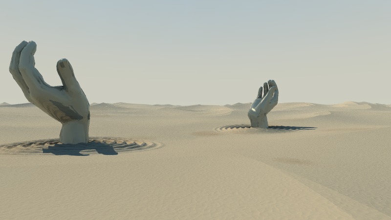 > I like the dunes at the far end of the image;  I like the hands,  too.