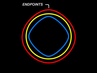 red spline is mostly different from the yellow circle at the endpoints, so I