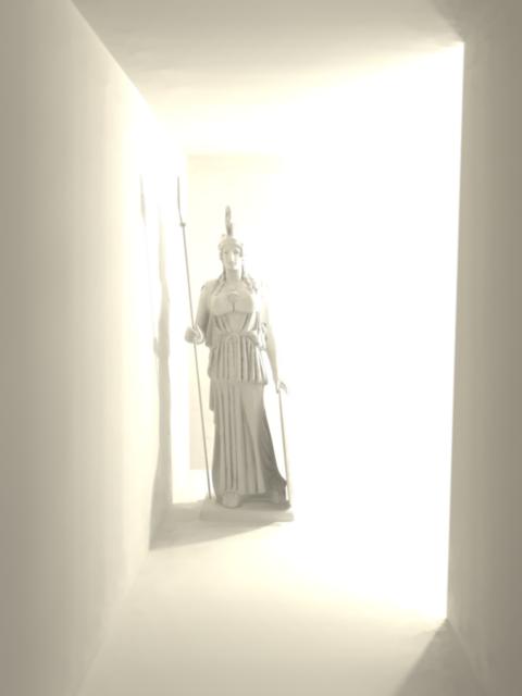 > shadows of the corner and of the statue.