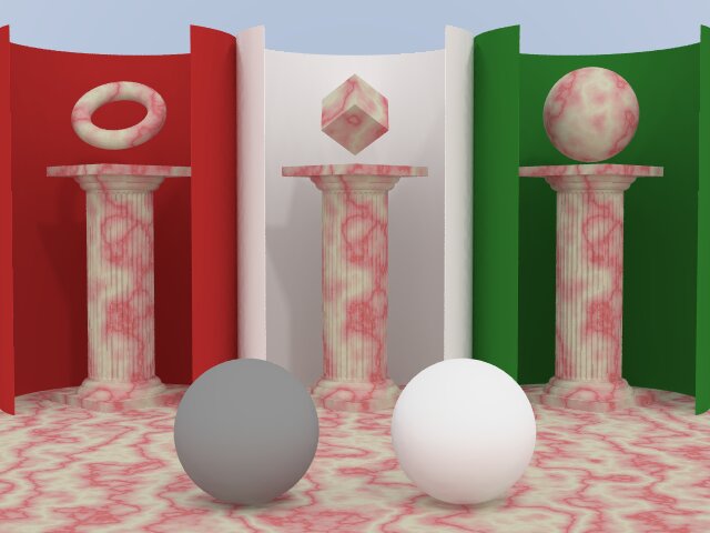 The new radiosity test scene features three complex objects with colored