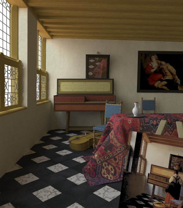 > was sitting, so you can see the easel. The dimension for the room was reconstructed