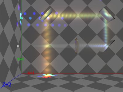 Apart from the spiffy colour-changing, notice the straggler blue photons