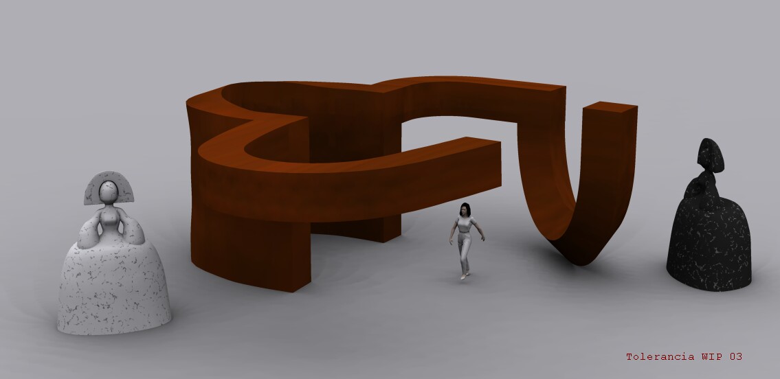 The rusty iron sculpture is "Tolerance" by Chillida.