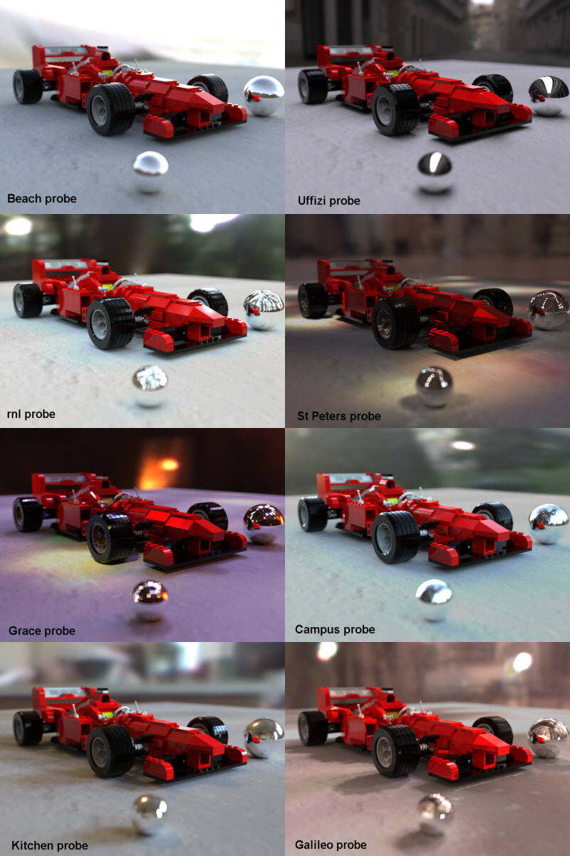 > Here are some tests of the HDRI (high dynamic range illumination)