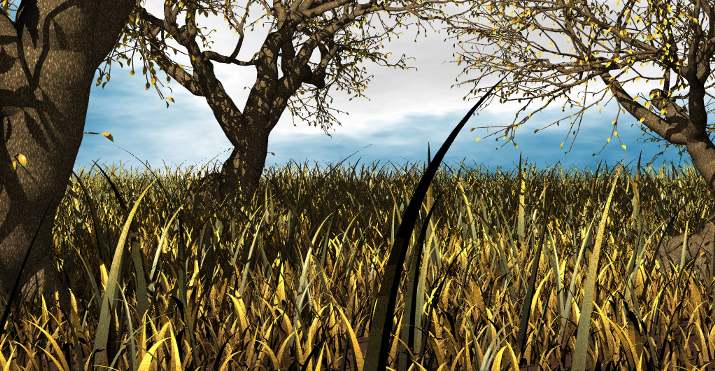 > For the dead grass, I simply caused it to bend more, and made it very thin