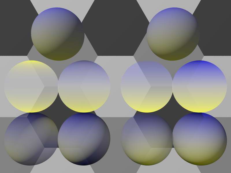 The spheres on the left use the 'slope' pattern, while those on the right