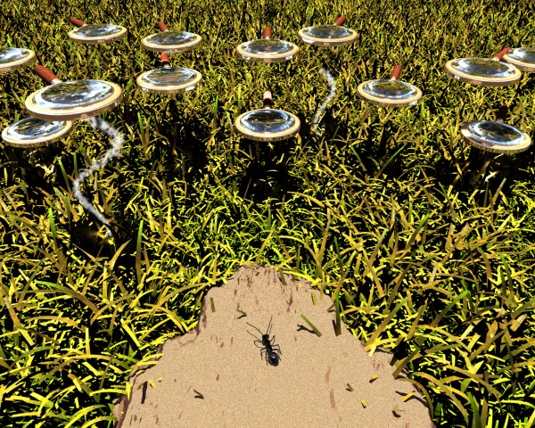 some rays hit the ground near the ant.