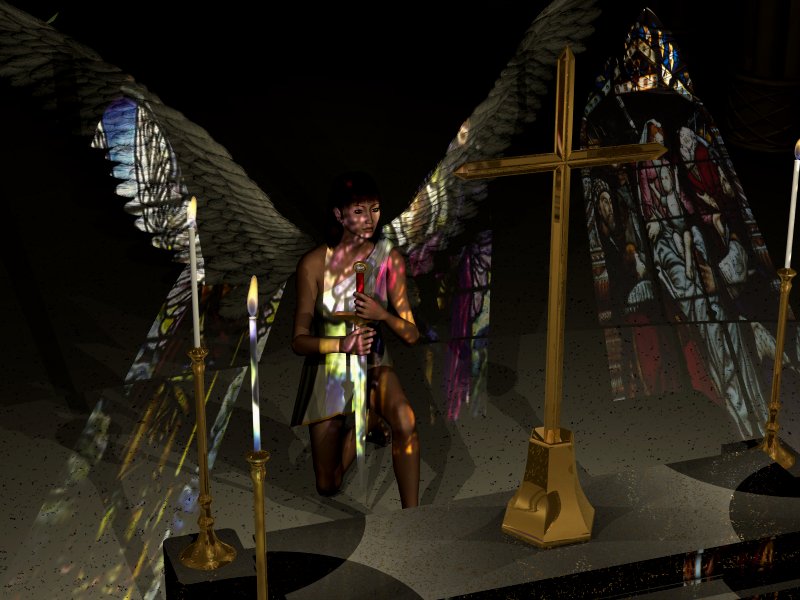> Figure, clothing and wings from poser, cross and candlesticks