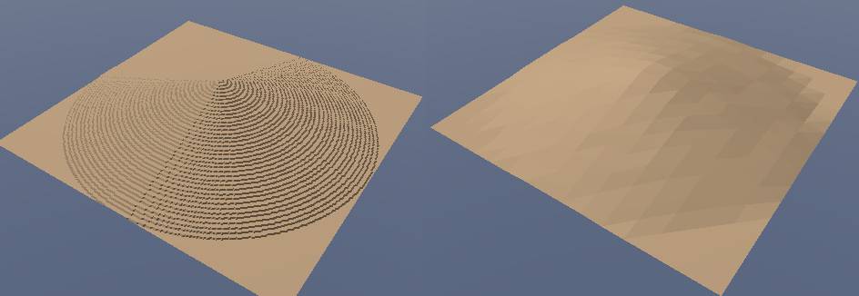 > On the right hand image, the resolution of the height-field is low enough