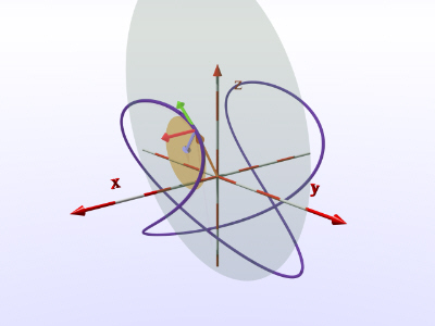 (green), unit normal (light blue) and unit binormal (red) vectors to a
