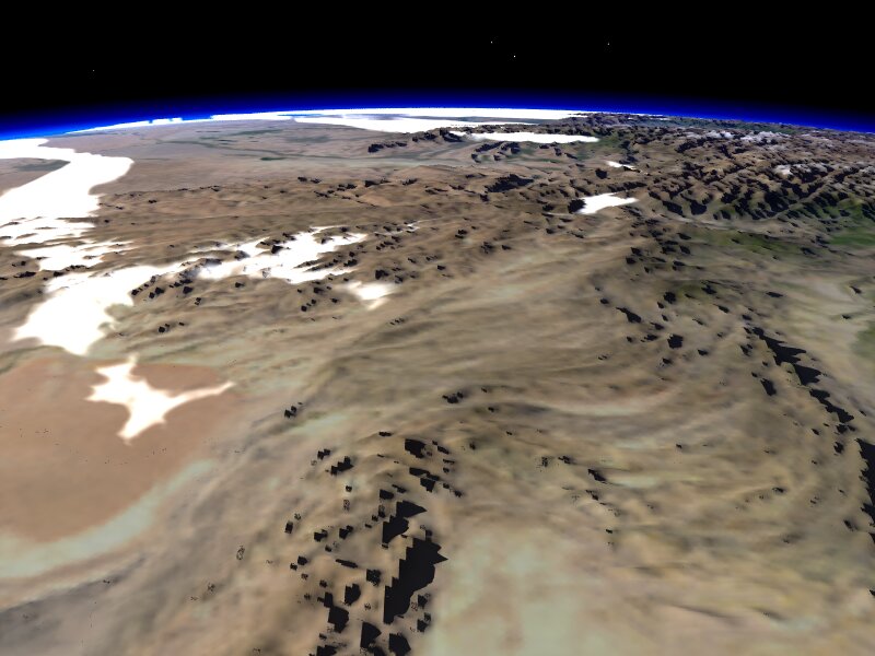 heightfield - only 10,800 by 5,400 pixels - I exaggerated the relief by