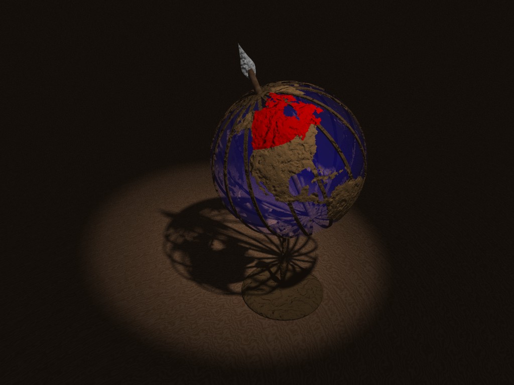 another sphere with an image map of the world (with all land in brown, and