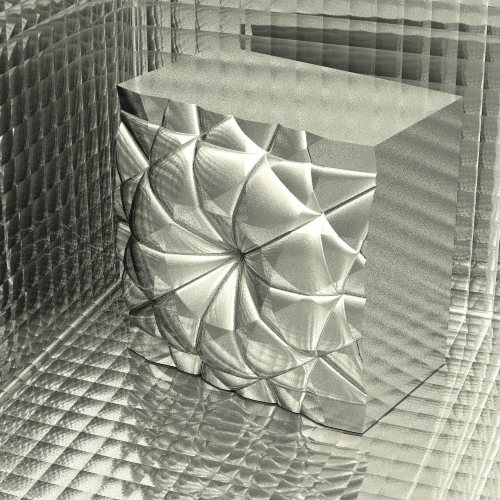 intersected with a box, inside a quilted room. The metal texture is