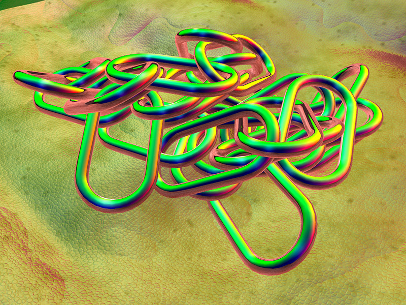 > I like the colors and the background texture. Is it some> kind of crackle normal on an isosurface? Good finishes too. Also, are> those links meshes or are the apparent segments just an optical> illusion?