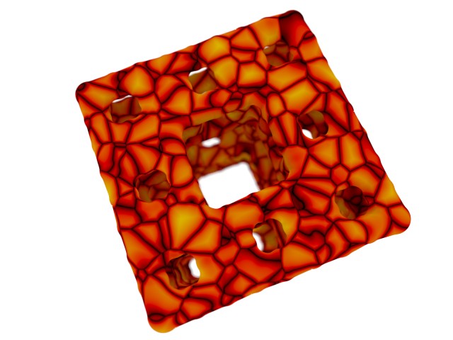 Played around with a menger sponge. Blobed the objects together, added