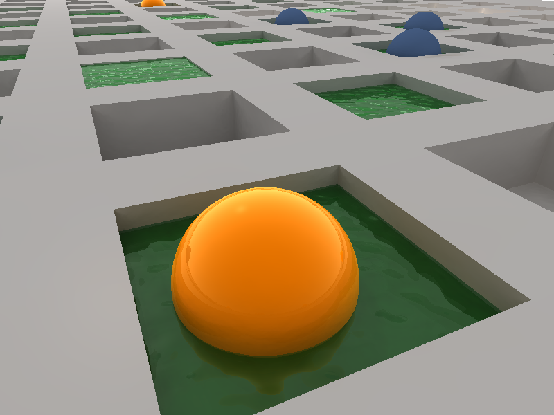 > Maybe water drops on the sphere or a diving board somewhere near a water