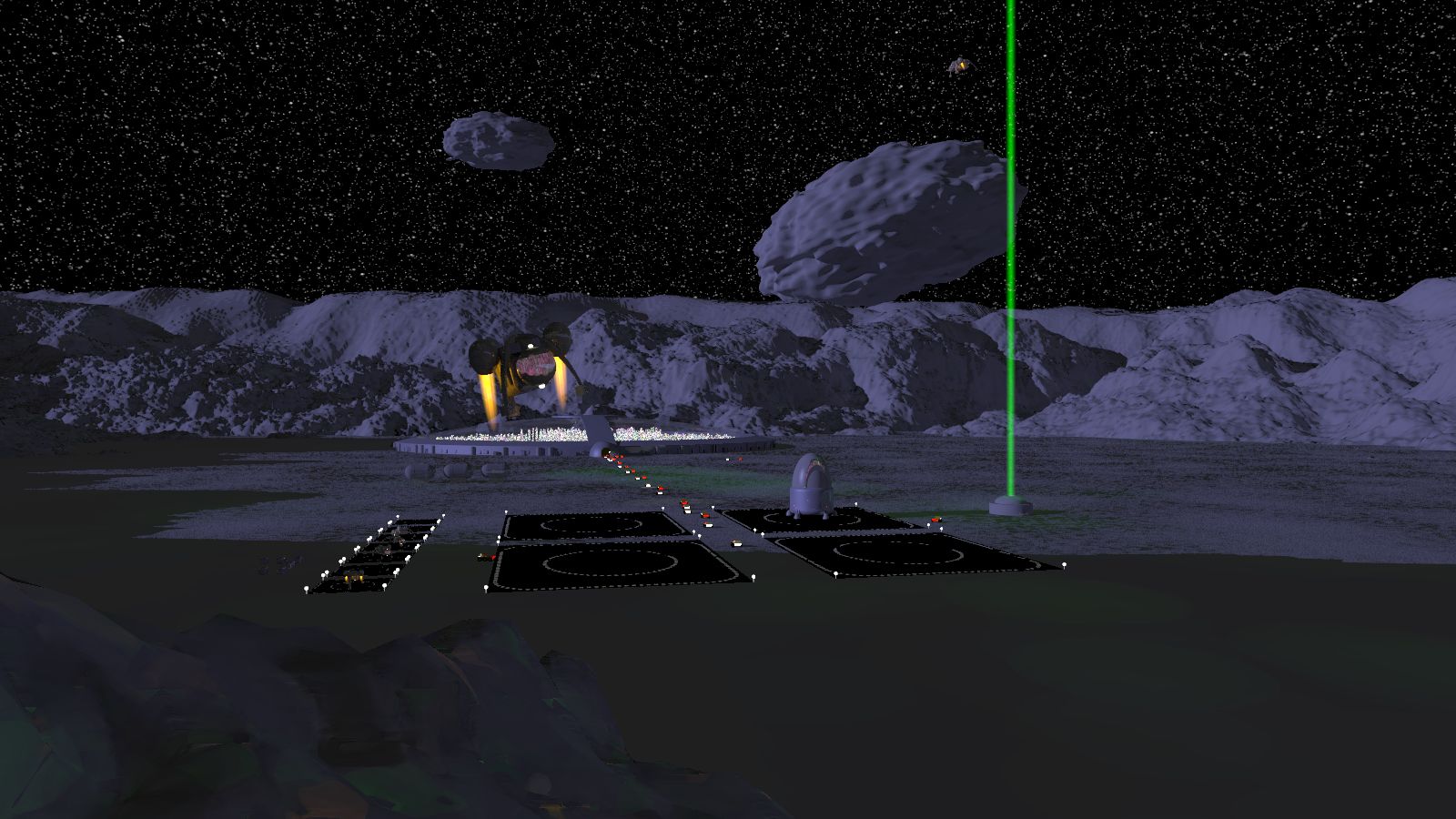> Nice work, I'll just say 2 or 3 little things>> - I think there are to much stars (or at least too much stars of the> same intensity)>> - You should have detailed vehicles : they looks like red and white> boxes : you could try to make their lights much precise and much thin>> - Just a little remark about physics (don't take it into acount) : In> the reality, your laser may not be visible because the asteroids don't> have atmosphere (or a realy insignifiant one) so there no particles to> diffuse the light and make it visible !>> Thierry>