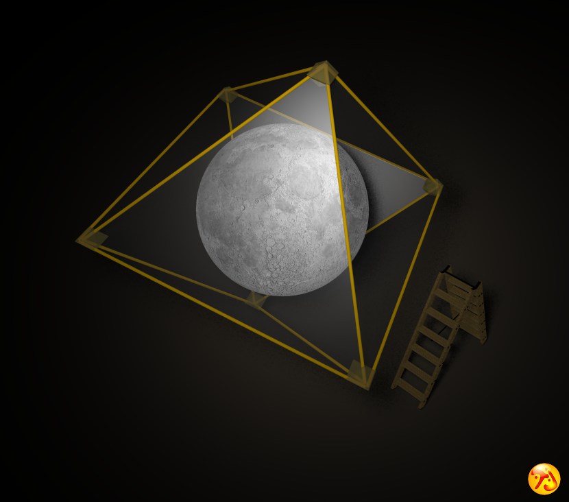 a telescopic image of the moon onto a big white sphere. In that projection,