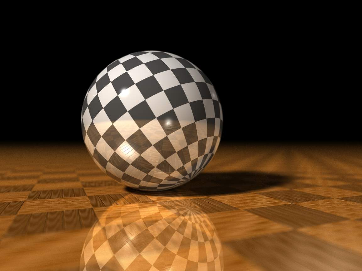 Hmm... a checkered sphere over a reflective plane... I think maybe