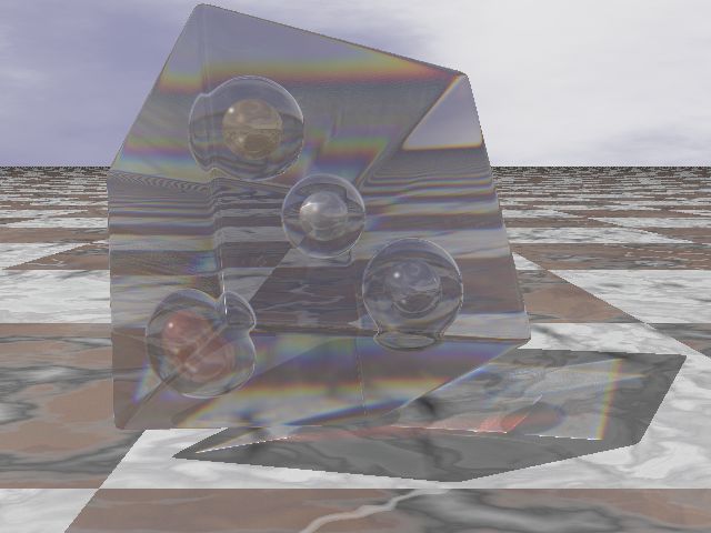 > The spheres are a little hidden whithin this glassy cube,