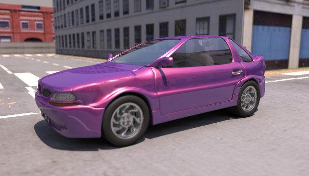 photos mapped on boxes. But the car paint is 100% POV-Ray procedural