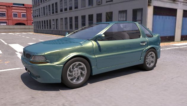 photos mapped on boxes. But the car paint is 100% POV-Ray procedural