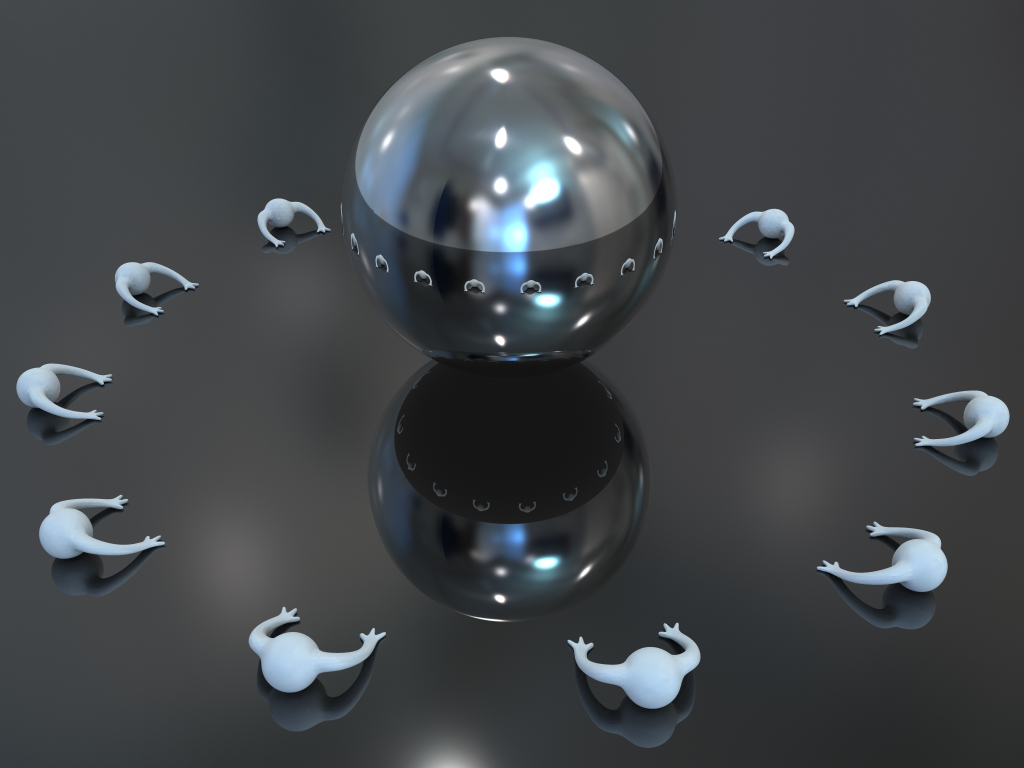 > The drab and lusterless commoners file into the Temple of Reflection. > They bow their little sphere foreheads (?!) to the ground in worship of > the almighty Chrome God.> > Why is it that spheres just never get old?> > > Oskar