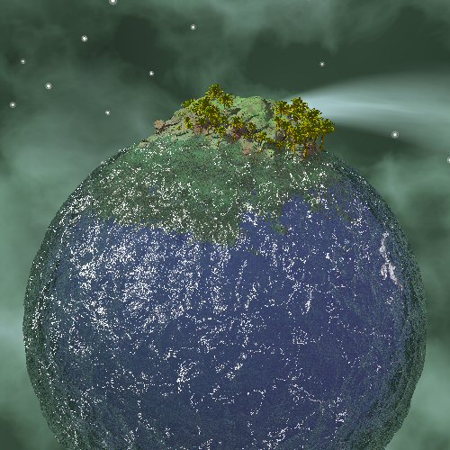 > A quick one this time :-)>> An application of the IC_HF_Sphere_Function() to Marc Jacquier's sea> function; a Geomorph island; trees from POVTree; Chris Colefax's Galaxy...> and presto!