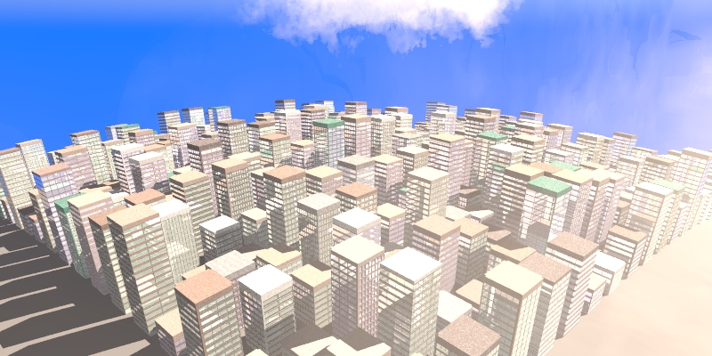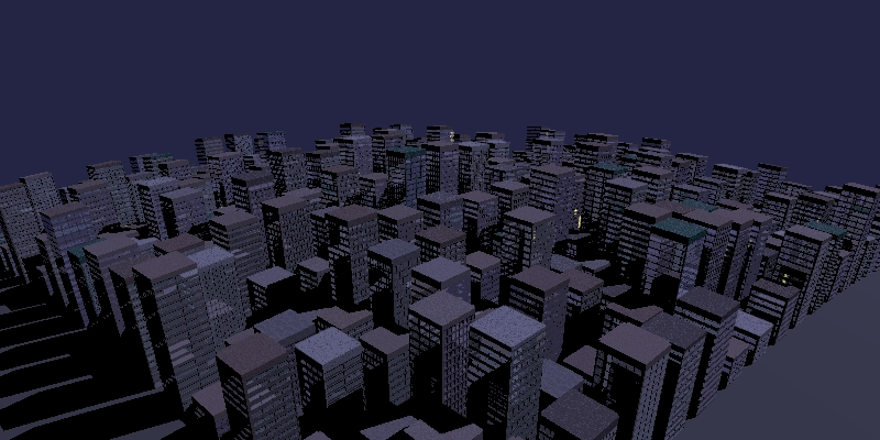 Here's a little scene I ran with 16x16 city blocks, each of which