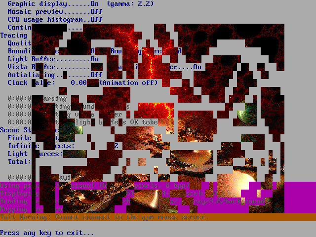 The POV-Ray text is colored thanks to the unix frontend patch, which can