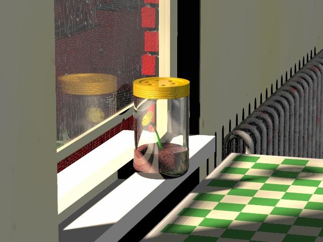 reflection) gives a sense that the jar is just hovering there.