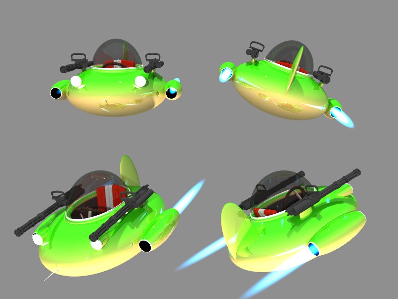 Here's my improbable space ship with obligatory armaments.