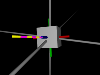 The long gray cylinders are the global coordinate system. The red,
