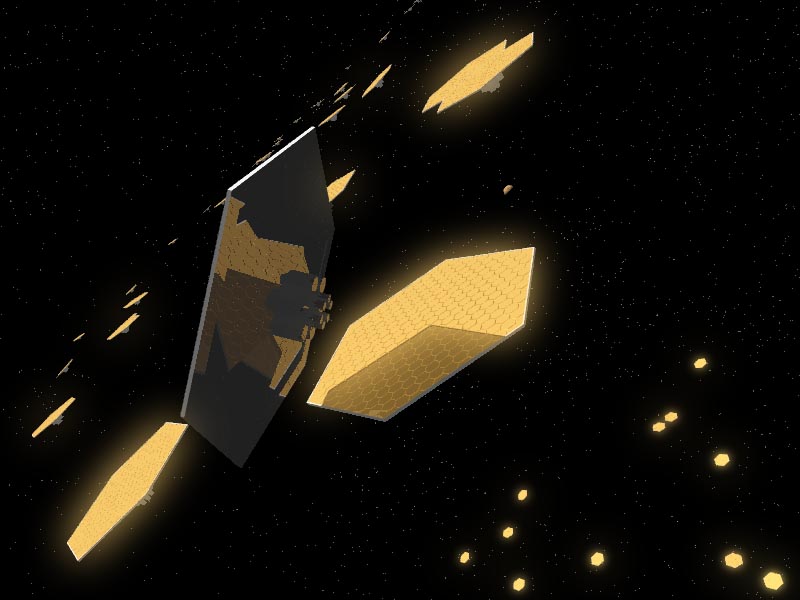 This picture shows many of the large 2km-diameter solar power stations, one