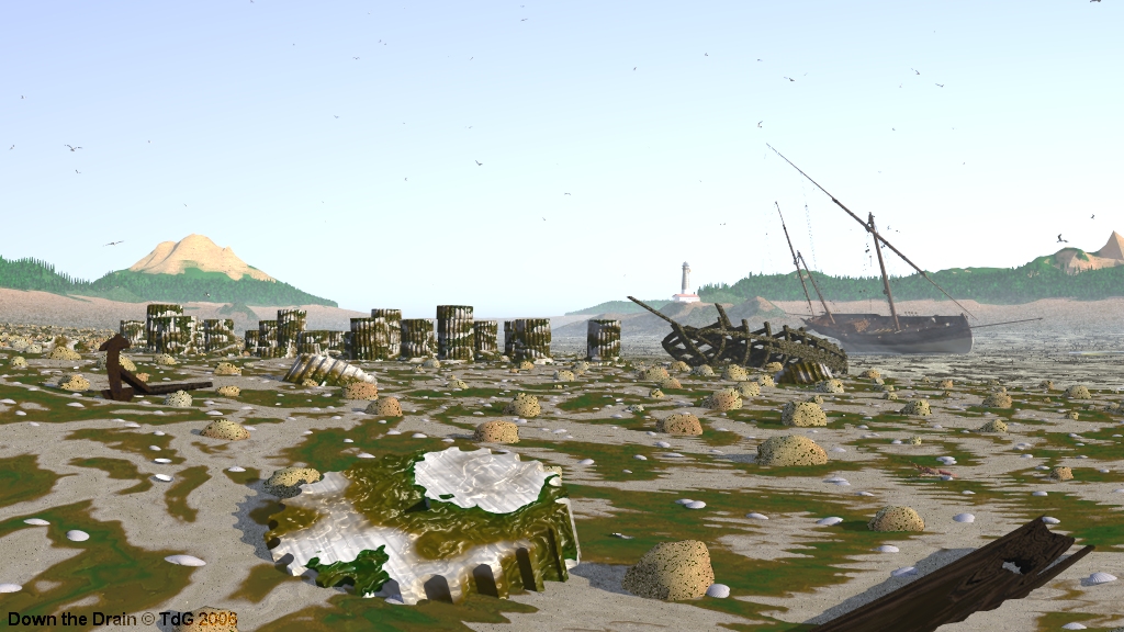 The wreck and the stranded non-wreck look great, and I think the river-banks
