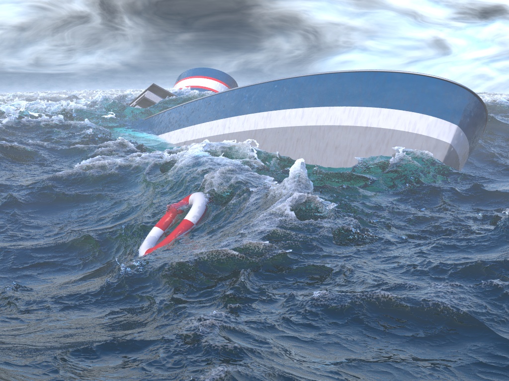 too sunny to justify the waves let alone the sinking ship! But it looks