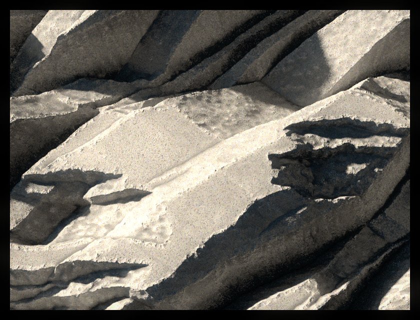 > The scene was rendered with low radiosity settings. Slight noise and a