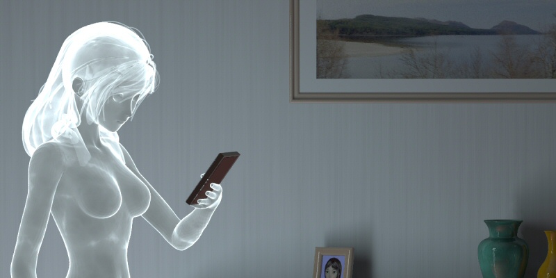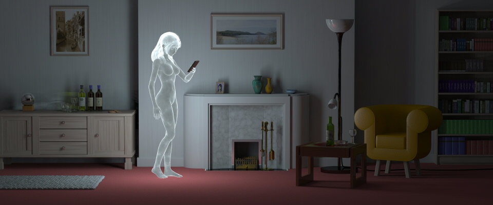 over the ceiling and some of the room, but the lady ghost may 'stand out'