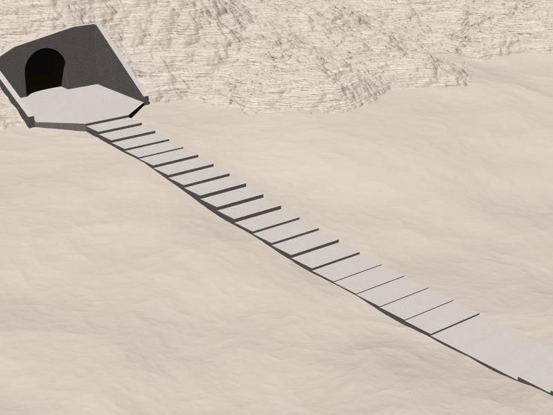series of ramps that follow the ground.