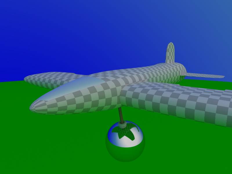 > a reflective sphere on a checkered plane proof of concept.