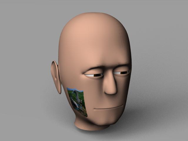 lighting. The colored patch on the cheek is a texture-mapped image used